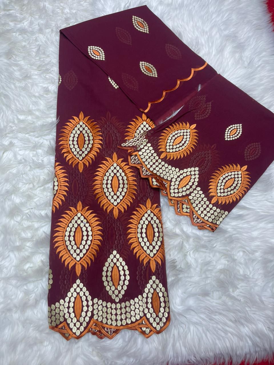 Découvrez notre superbe salouva brodé en dentelle suisse multicolore, confectionné à partir de 100% coton de haute qualité. Avec ses dimensions généreuses de 4,5 mètres de long et 1,47 mètre de large.