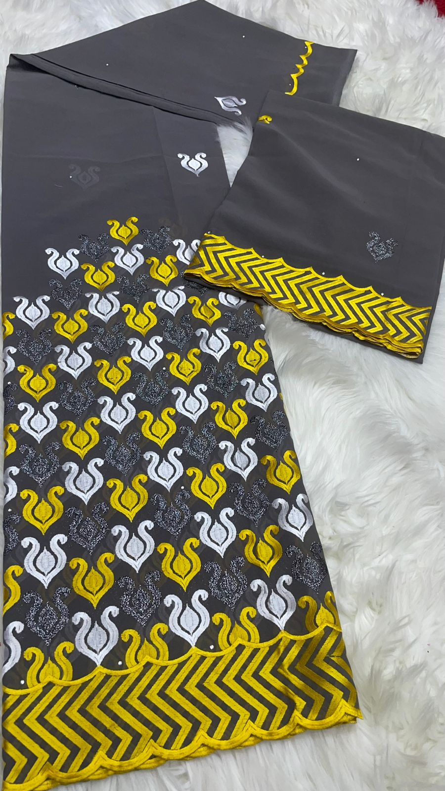 Découvrez notre superbe tissu brodé en dentelle suisse multicolore, confectionné à partir de 100% coton de haute qualité. Avec ses dimensions généreuses de 4,5 mètres de long et 1,47 mètre de large.